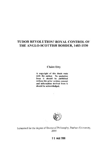 Tudor revolution? : royal control of the Anglo-Scottish border, 1483-1530.