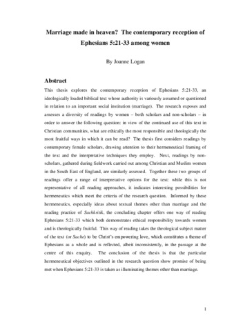 Marriage made in heaven? The contemporary reception of Ephesians 5:21-33 among women