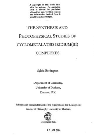 The synthesis and photophysical studies of cyclometalated iridium(III) complexes.