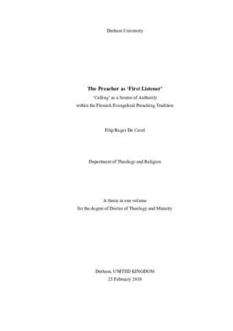 The Preacher as ‘First Listener’: ‘Calling’ as a Source of Authority within the Flemish Evangelical Preaching Tradition