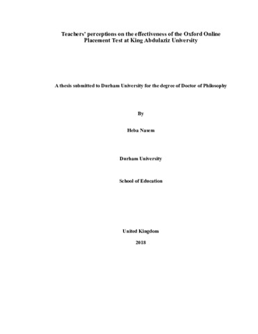 Teachers’ perceptions on the effectiveness of the Oxford Online Placement Test at King Abdulaziz University