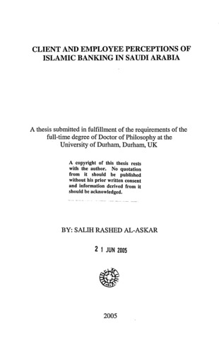 Client and employee perceptions of Islamic banking in Saudi Arabia.