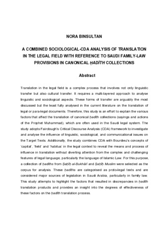 A COMBINED SOCIOLOGICAL-CDA ANALYSIS OF TRANSLATION IN THE LEGAL FIELD WITH REFERENCE TO SAUDI FAMILY-LAW PROVISIONS IN CANONICAL ḤADῙTH COLLECTIONS