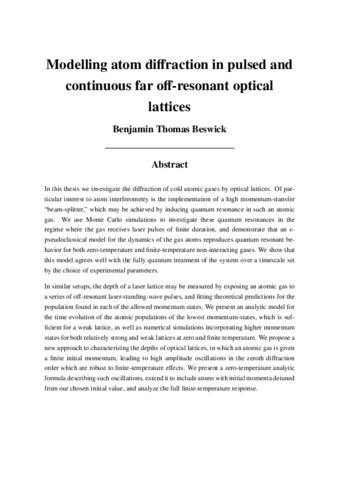 In this thesis we investigate the diffraction of cold atomic gases by optical lattices. Of particular interest to atom interferometry is the implementation of a high momentum-transfer ``beam-splitter,'' which may be achieved by inducing quantum resonance in such an atomic gas. We use Monte Carlo simulations to investigate these quantum resonances in the regime where the gas receives laser pulses of finite duration, and demonstrate that an -pseudoclassical model for the dynamics of the gas atoms reproduces quantum resonant behavior for both zero-temperature and finite-temperature non-interacting gases. We show that this model agrees well with the fully quantum treatment of the system over a timescale set by the choice of experimental parameters. In similar setups, the depth of a laser lattice may be measured by exposing an atomic gas to a series of off-resonant laser-standing-wave pulses, and fitting theoretical predictions for the population found in each of the allowed momentum states. We present an analytic model for the time evolution of the atomic populations of the lowest momentum-states, which is sufficient for a weak lattice, as well as numerical simulations incorporating higher momentum states for both relatively strong and weak lattices at zero and finite temperature. We propose a new approach to characterizing the depths of optical lattices, in which an atomic gas is given a finite initial momentum, leading to high amplitude oscillations in the zeroth diffraction order which are robust to finite-temperature effects. We present a zero-temperature analytic formula describing such oscillations, extend it to include atoms with initial momenta detuned from our chosen initial value, and analyze the full finite-temperature response.