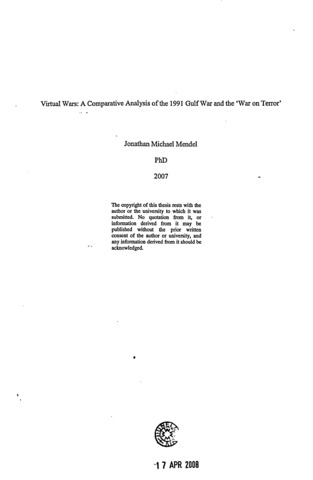 Virtual wars : a comparative analysis of the 1991 Gulf War and the 'War on Terror'.