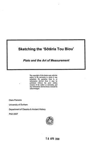 Sketching the 'Sôtêria Tou Biou' : Plato and the art of measurement.
