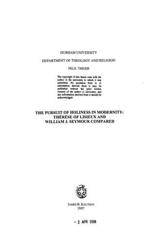 THE PURSUIT OF HOLINESS IN MODERNITY: THERESE OF LISIEUX AND WILLIAM J. SEYMOUR COMPARED.