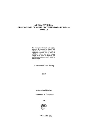 At home in India : geographies of home in contemporary indian novels.