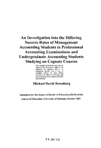 An investigation into the differing success rates of management accounting students in professional accounting examinations and undergraduate accounting students studying on cognate courses.