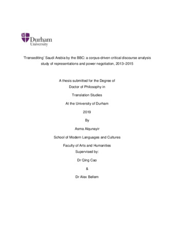 subject - PhD Thesis entitled: ‘Transediting’ Saudi Arabia by the BBC: a corpus-driven critical discourse analysis study of representations and power negotiation, 2013–2015