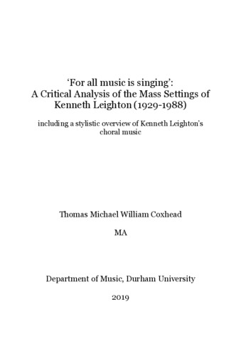 A critical analysis of the mass settings of Kenneth Leighton and a stylistic overview of his choral music.