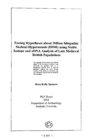 Testing hypotheses about diffuse idiopathic skeletal hyperostosis (DISH) using stable isotope and aDNA analysis of late medieval British populations.