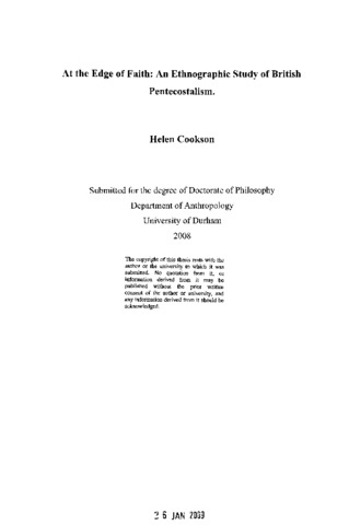 AT THE EDGE OF FAITH: AN ETHNOGRAPHIC STUDY OF BRITISH PENTECOSTALISM