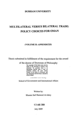 Multilateral versus bilateral trade: policy choices in Oman.