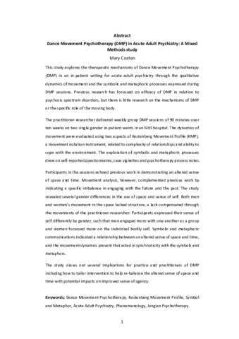 Dance Movement Psychotherapy (DMP) in Acute Adult Psychiatry: A Mixed Methods study