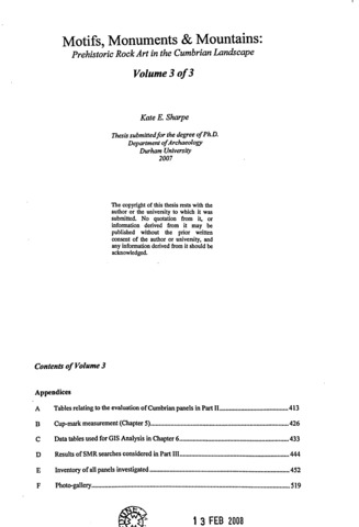 Motifs, monuments and mountains: prehistoric rock art in the Cumbrian landscape.
