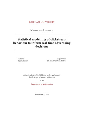 individual page visits on a daily basis. Exploring, cleaning and transforming data of this scale and high dimensionality (2TB+ of memory) is particularly challenging, and requires cluster computing. We outline a variable selection method to summarise clickstream behaviour with a single value, and make comparisons to other dimension reduction techniques. We illustrate how to apply generalised linear models and zero-inflated models to predict sponsored search advert clicks based on keywords. We consider the problem of predicting customer purchases (known as conversions), from the customer’s journey or clickstream, which is the sequence of pages seen during a single visit to a website. We consider each page as a discrete state with probabilities of transitions between the pages, providing the basis for a simple Markov model. Further, Hidden Markov models (HMMs) are applied to relate the observed clickstream to a sequence of hidden states, uncovering meta-states of user activity. We can also apply conventional logistic regression to model conversions in terms of summaries of the profile’s browsing behaviour and incorporate both into a set of tools to solve a wide range of conversion types where we can directly compare the predictive capability of each model. In real-time, predicting profiles that are likely to follow similar behaviour patterns to known conversions, will have a critical impact on targeted advertising. We illustrate these analyses with results from real data collected by an Audience Management Platform (AMP) - Carbon.