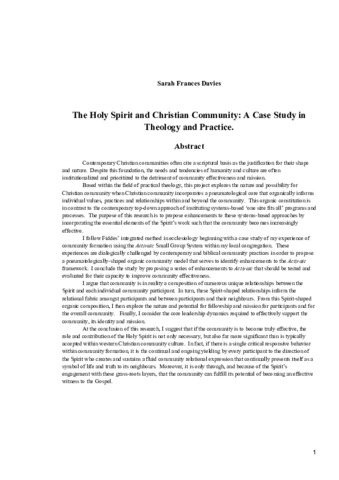 The Holy Spirit and Christian Community: A Case Study in Theology and Practice.