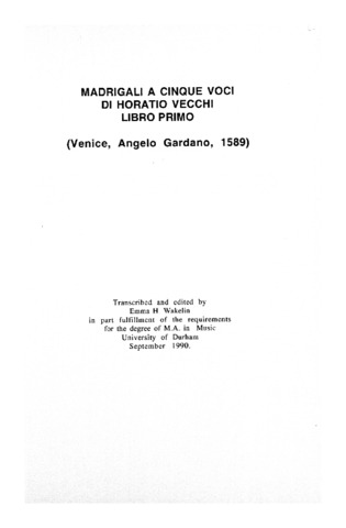 Madrigali a cinque voci di Horatio Vecchi, libro primo: Venice, Angelo Gardano 1589.
