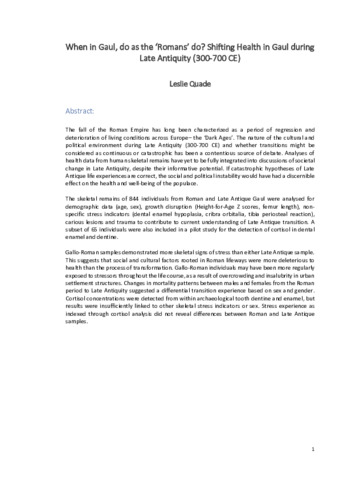 When in Gaul, do as the ‘Romans’ do? Shifting Health in Gaul during Late Antiquity (300-700 CE)