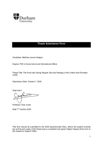 The Post Arab Spring Regime Security Strategy of the United Arab Emirates (UAE)
