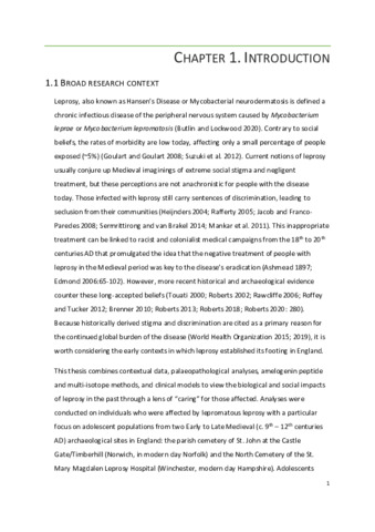Leprosy is a bacterial infection, and although fully treatable, leprosy is commonly associated with negative social perceptions, stigma, and ostracism. Many historical sources cite similar reactions in Medieval England to justify these modern-day views, including a dominant narrative that expulsion and poor treatment was the primary means of medieval eradication. This research employs a novel, cross-disciplinary approach to examine aspects of the life course from adolescents (c. 10-25 years old) who died with leprosy to reveal biological and social impacts of the disease during the Early-Late Medieval transition (9th – 12th centuries AD). This transition is defined by dynamic cultural and population shifts, and runs concurrent with the increase of leprosy in England. The individuals analysed originate from the parish cemeteries of St. John at the Castle Gate (Norwich; 10th – 11th centuries AD) and the St. Mary Magdalen leprosarium (Winchester; 9th – 12th centuries AD). Amelogenin peptide extraction and multi-isotope analyses (strontium, oxygen, carbon, and nitrogen isotopes) determined biological sex, residential origins, and whole-life dietary profiles, which were combined with historical, archaeological, and clinical frameworks to nuance the particulars of these people’s lived experience. The results from this research suggest that the leprosy stigma, as we understand it today, was not present in pre-12th century AD England. Combined data indicate that care (in terms of respect and/or treatment) is evidenced in both archaeological contexts. The majority of adolescents were local to their respective communities and results also reveal the presence of local and non-local females buried within the leprosarium. Dietary isotope profiles evidence early life stress, a ‘leprosarium diet’ consistent with high-status monastic contexts, and metabolic disruptions likely due to the onset of leprosy. When fully contextualised, these results help to reveal a fuller picture of leprosy in the past using adolescents as a conduit for the biological and social milieu of leprosy in the Medieval period. This line of research is important in understanding and addressing present-day immunological susceptibilities, pathophysiological responses, social inequalities, and treatment of peoples with leprosy, and underscores the important contributions of cross-disciplinary bioarchaeological research to modern understandings of disease histories and dynamics.
