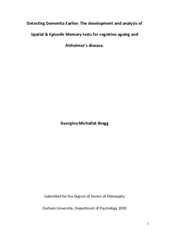 Detecting Dementia Earlier: The development and analysis of Spatial & Episodic Memory tests for cognitive ageing and Alzheimer’s disease.