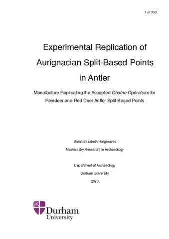 Experimental Replication of Aurignacian Split- Based Points in Antler: Manufacture Replicating the Accepted Chaîne Opératoire for Reindeer and Red Deer Antler Split-Based Points