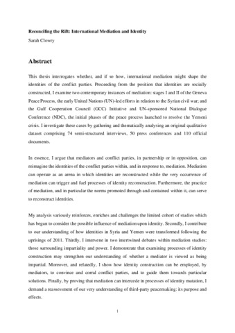 Reconciling the Rift: International Mediation and Identity