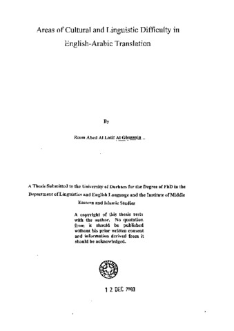 Areas of cultural and linguistic difficulty in English-Arabic translation