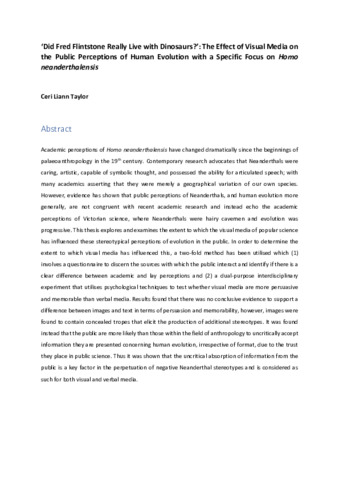 ‘Did Fred Flintstone Really Live with Dinosaurs?’: The Effect of Visual Media on the Public Perceptions of Human Evolution with a Specific Focus on Homo neanderthalensis