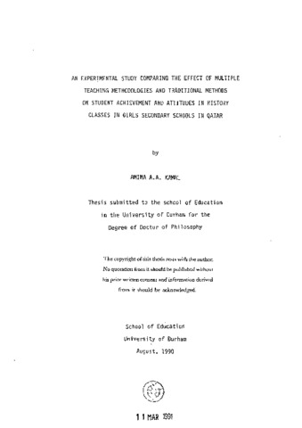 An experimental study comparing the effect of multiple teaching methodologies and traditional methods on student achievement and attitudes in history classes in girls' secondary schools in Qatar.