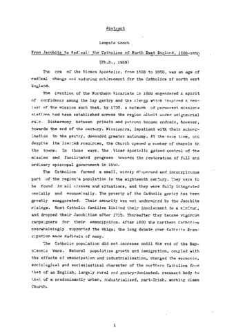 From Jacobite to Radical : the Catholics of North East England, 1688-1850.