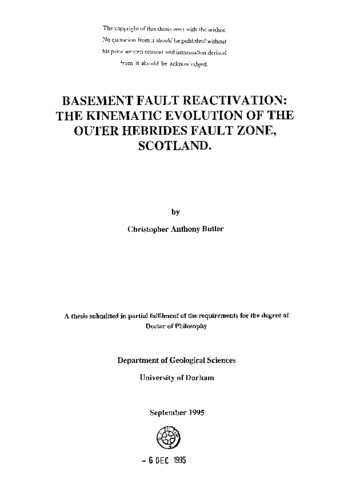 Basement fault reactivation : the kinematic evolution of the Outer Hebrides Fault Zone, Scotland.