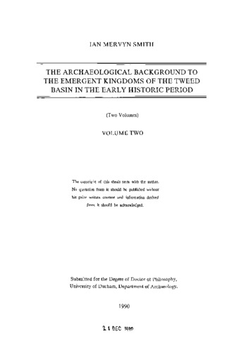 The archaeological background to the emergent kingdoms of the Tweed Basin in the Early Historic period.