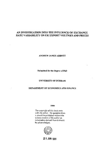 An investigation into the influence of exchange rate variability on UK export volumes and prices.