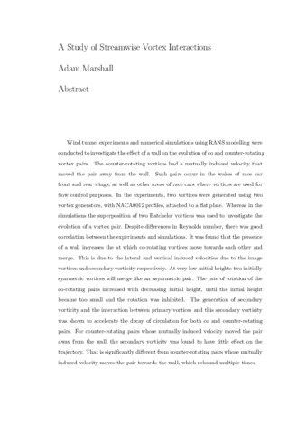 Wind tunnel experiments and numerical simulations using RANS modelling were conducted to investigate the effect of a wall on the evolution of co and counter-rotating vortex pairs. The counter-rotating vortices had a mutually induced velocity that moved the pair away from the wall. Such pairs occur in the wakes of race car front and rear wings, as well as other areas of race cars where vortices are used for flow control purposes. In the experiments, two vortices were generated using two vortex generators, with NACA0012 profiles, attached to a flat plate. Whereas in the simulations the superposition of two Batchelor vortices was used to investigate the evolution of a vortex pair. Despite differences in Reynolds number, there was good correlation between the experiments and simulations. It was found that the presence of a wall increases the at which co-rotating vortices move towards each other and merge. This is due to the lateral and vertical induced velocities due to the image vortices and secondary vorticity respectively. At very low initial heights two initially symmetric vortices will merge like an asymmetric pair. The rate of rotation of the co-rotating pairs increased with decreasing initial height, until the initial height became too small and the rotation was inhibited. The generation of secondary vorticity and the interaction between primary vortices and this secondary vorticity was shown to accelerate the decay of circulation for both co and counter-rotating pairs. For counter-rotating pairs whose mutually induced velocity moved the pair away from the wall, the secondary vorticity was found to have little effect on the trajectory. That is significantly different from counter-rotating pairs whose mutually induced velocity moves the pair towards the wall, which rebound multiple times.
