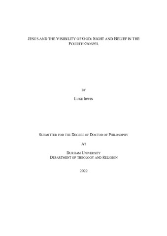 JESUS AND THE VISIBILITY OF GOD: SIGHT AND BELIEF IN THE FOURTH GOSPEL