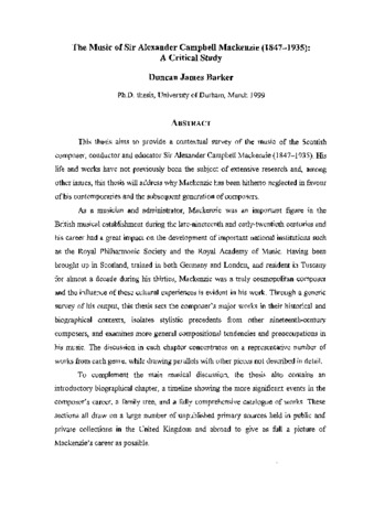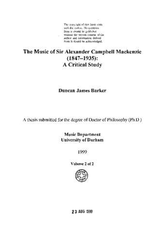 The music of Sir Alexander Campbell Mackenzie (1847-1935) : a critical study.