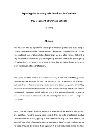 Exploring the Special-grade Teachers’ Professional Development at Chinese Schools