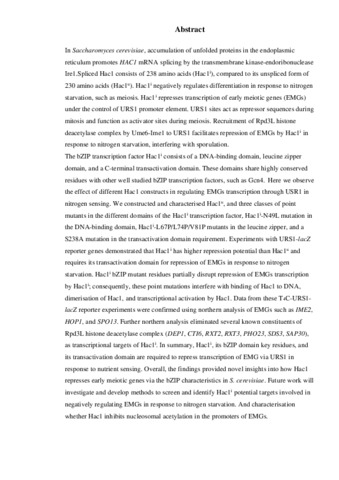 Characterisation of the bZIP Transcription Factor Hac1 Key Domains in Transcriptional Repression of Early Meiotic Genes