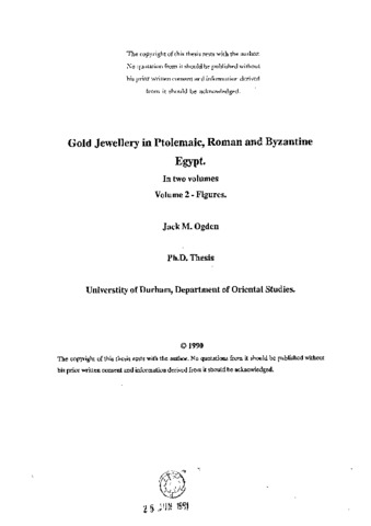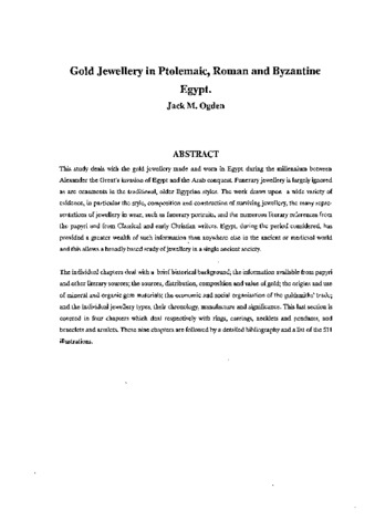 Gold jewellery in Ptolemaic, Roman and Byzantine Egypt.