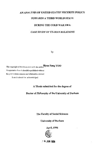 An analysis of United States security policy towards a third world state during the Cold War era : case study of US-Iran relations.