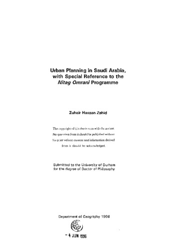 Urban planning in Saudi Arabia with special reference to the Nitag Omrani Programme.