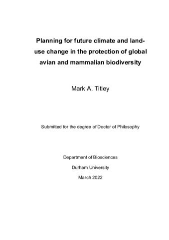 | Uncontrolled Keywords | biodiversity; climate change; land-use change; conservation; birds; mammals; ecology; modelling |