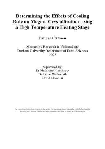 Determining the Effects of Cooling Rate on Magma Crystallisation Using a High Temperature Heating Stage