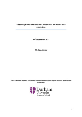Modelling farmer and consumer preferences for cleaner food production