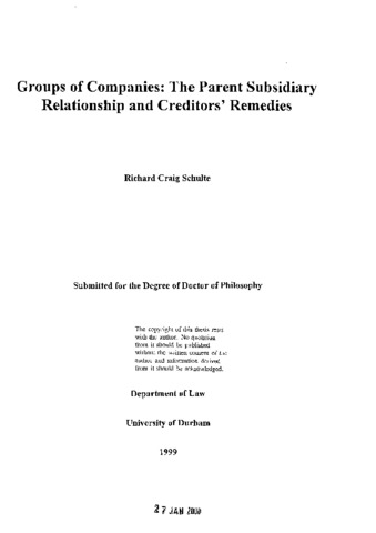 Groups of companies : the parent subsidiary relationship and creditors remedies.