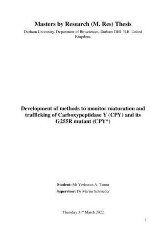 Development of methods to monitor maturation and trafficking of Carboxypeptidase Y (CPY) and its G255R mutant (CPY*)