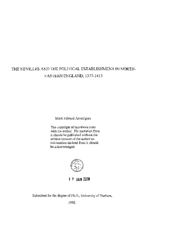 The Nevilles and the political establishment in north-eastern England, 1377-1413.